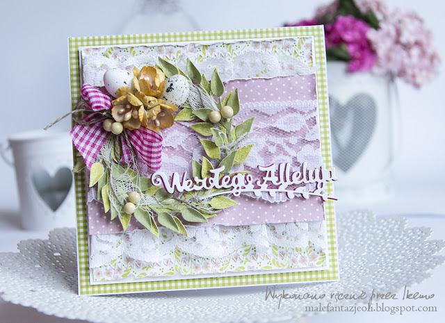 Last month we had Christmas amd now we have time to prepare to Easter ;) That is why I used our lovely die Wreath and flower to create first easter card this year! I combine delicate pastel colours to make spring background. On the wreath I put three flowers made from Wreath and flower die. As a word I used Wesołego Alleluja die.